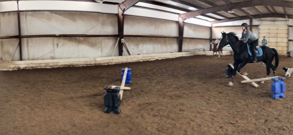 We finished the lesson by popping over a few crossbars to build confidence. I reflected on our growth as a team. The goal of our new jumping focus has nothing to do with ribbons or points. While heading to a show or two could be fun, it’s the journey that I am loving. I am growing as a rider, Jack is learning new skills, and most importantly, we are building a closer bond, becoming a stronger team.